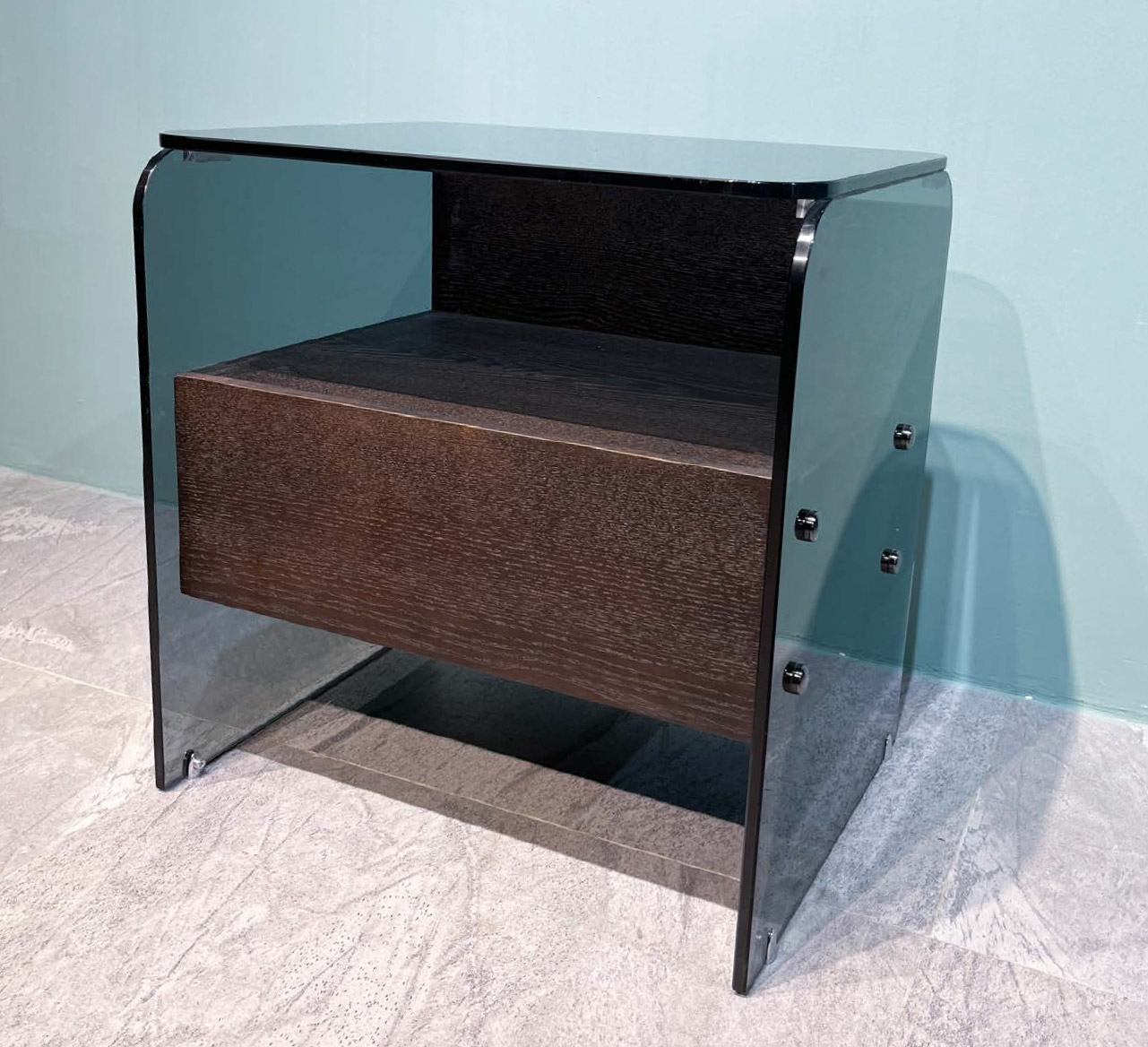 Luxury Solid Wood Nightstand with Glass Top and Side Panels – DFUP-5105