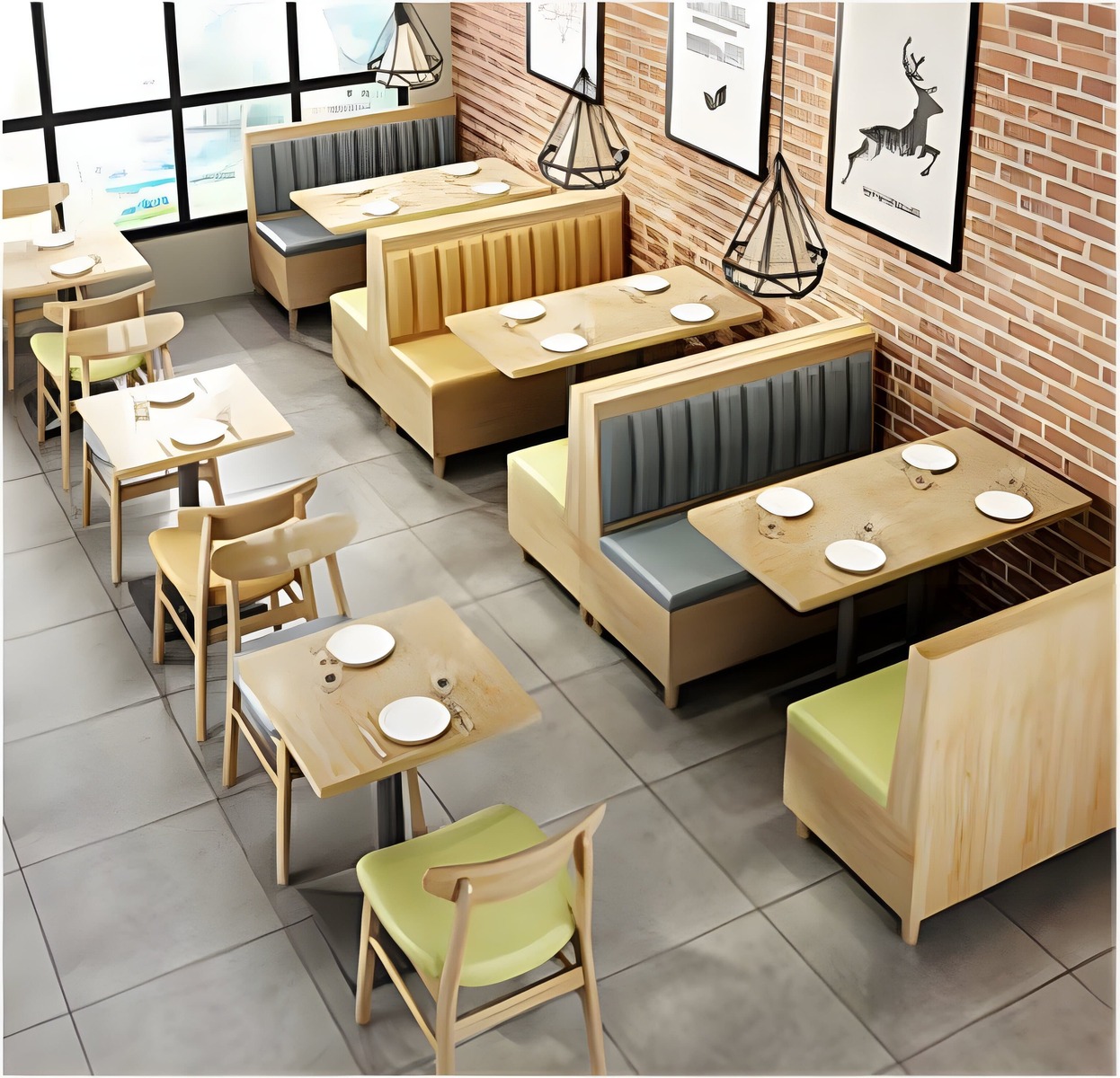- Low Maintenance: Easy to clean surfaces and fabrics, ideal for a busy café environment.